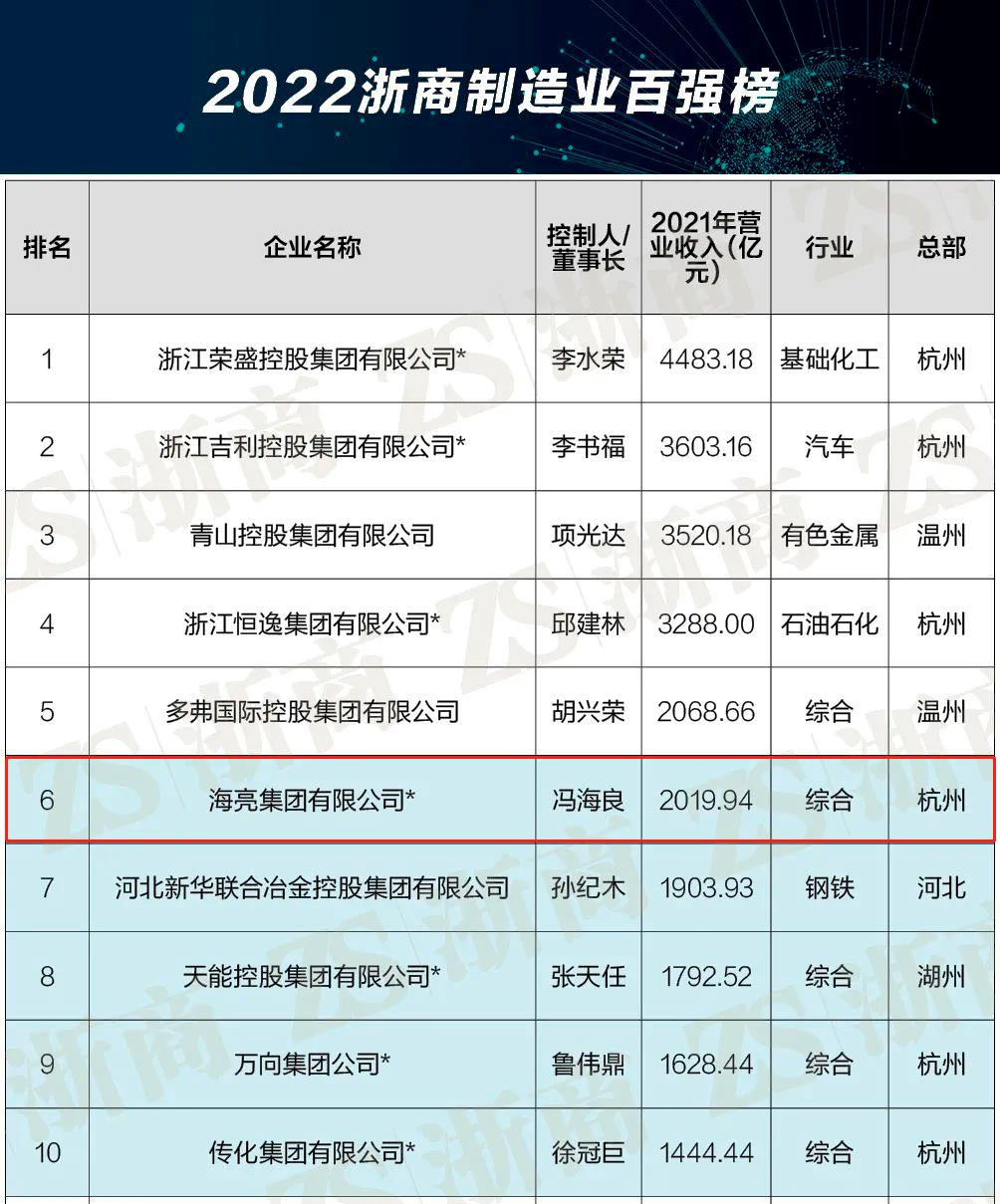 海亮集團連續17年入圍 | “2022浙商制造業百強榜”發布